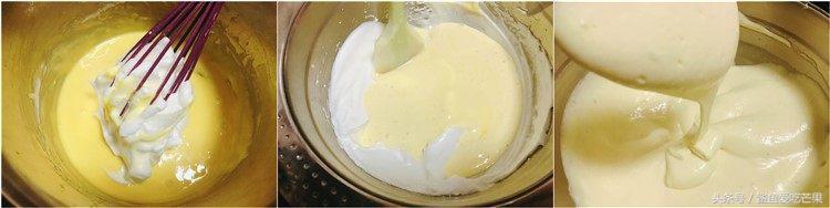 9. 再把拌好的蛋糊倒入蛋白中 翻拌勻 注意不要消泡了,此時烤箱上125 下115預熱