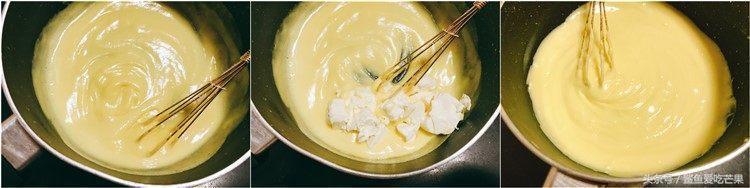 豆乳卡仕達醬:蛋黃一個,糖16g,低粉6g,豆?jié){75g,奶油奶酪45g,淡奶油50g,糖8g淡奶油用