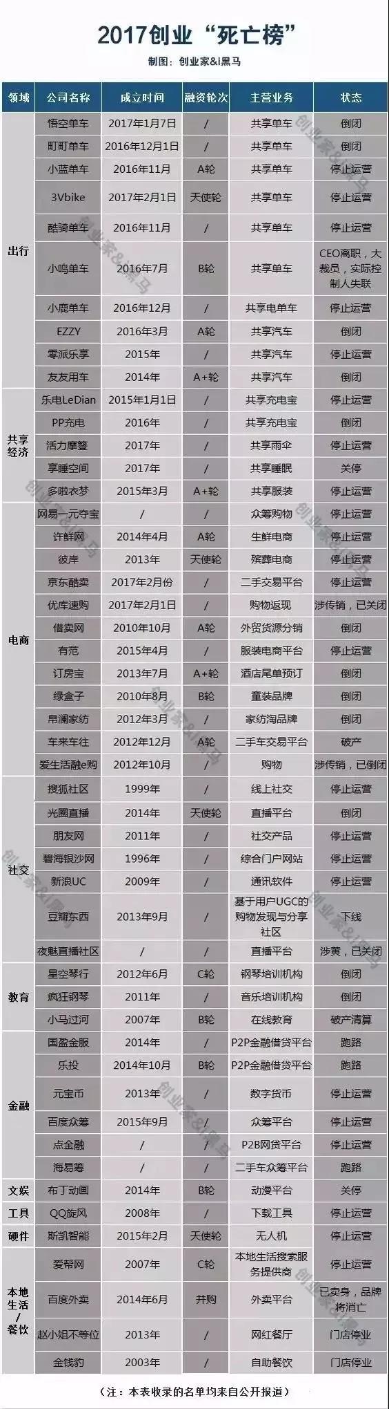 早前,一份2017企業(yè)陣亡名單在朋友圈瘋傳: