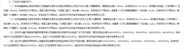 7月9日,吉林省食品藥品監(jiān)督管理局就國家食品安全監(jiān)督抽檢信息進(jìn)行了公示:總體情況為酒類115批次,不合格樣品2批次;肉制品20批次,不合格樣品2批次;糕點(diǎn)27批次,均未檢出不合格樣品。此批次不合格產(chǎn)品的具體信息: