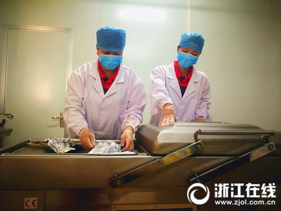 在金華市市場(chǎng)監(jiān)管局的對(duì)接幫助下,很快,樓獻(xiàn)英在中聯(lián)村找好了近300平米的場(chǎng)地,市場(chǎng)監(jiān)管局的工作人員在廠房設(shè)計(jì)階段就上門(mén)進(jìn)行了專(zhuān)業(yè)指導(dǎo),參照現(xiàn)代化食品生產(chǎn)企業(yè)的安全標(biāo)準(zhǔn)對(duì)生產(chǎn)車(chē)間布局和加工流程提出了科學(xué)建議,清洗消毒區(qū)、粗加工區(qū)、鹵制區(qū)、成品冷卻區(qū)各個(gè)生產(chǎn)區(qū)域劃分清晰;消毒設(shè)備、氮?dú)獍b設(shè)備、檢驗(yàn)設(shè)備、冷藏車(chē)等生產(chǎn)設(shè)備配置齊全;洗手、換衣、戴帽、戴口罩等衛(wèi)生程序標(biāo)準(zhǔn)規(guī)范。