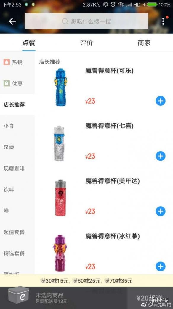 德克士在本次聯(lián)動活動中上架了兩種新漢堡,分別名為“聯(lián)盟牛油果鮮蝦堡”和“部落紅椒脆雞腿堡”,另外還有幾款款式多樣的“魔獸得意杯”可供選擇。另外根據(jù)德克士方面的介紹,只要在德克士購買指定魔獸雙堡套餐或者消費任意套餐加12元,即可獲得限量款魔獸世界得意杯一款。