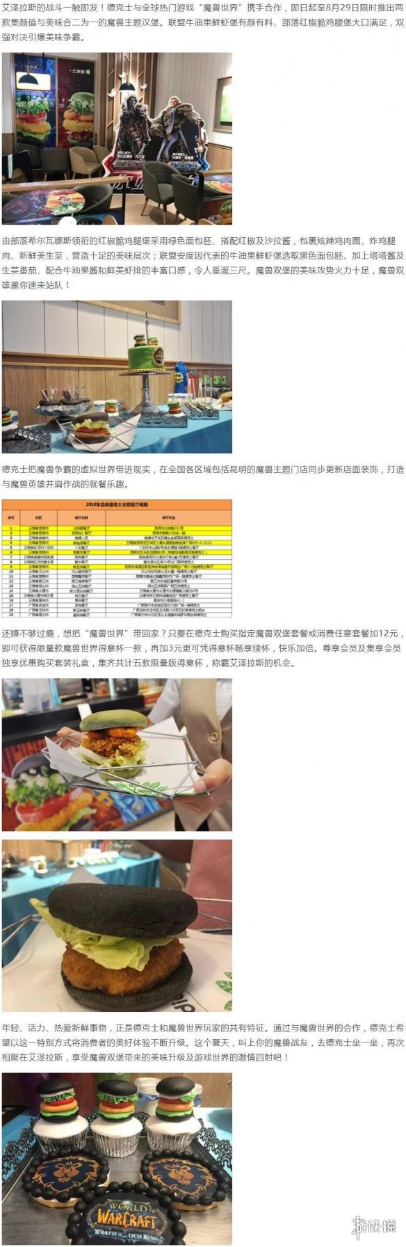 《魔獸世界》8.0版本爭霸艾澤拉斯即將于8月來臨。今天,游俠小編在覓食的時候猛然發(fā)現(xiàn)《魔獸世界》與德克士開展了聯(lián)動活動,上架了兩款頗具特色的漢堡以及多款部落/聯(lián)盟得意杯,一起來看看這幾樣“魔獸美食”。