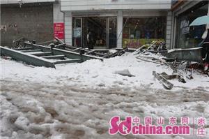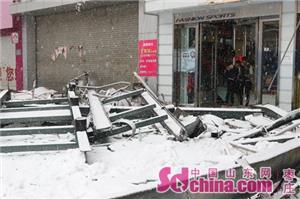 中國山東網(wǎng)棗莊頻道11月24日訊(記者 趙懷樸)24日上午,滕州市步行街春天服飾廣場鋼結(jié)構(gòu)頂棚因積雪過多被壓塌,導(dǎo)致頂棚下店鋪、車輛不同程度受損,還有部分鋼結(jié)構(gòu)框架懸掛在半空中,存在一定安全隱患。