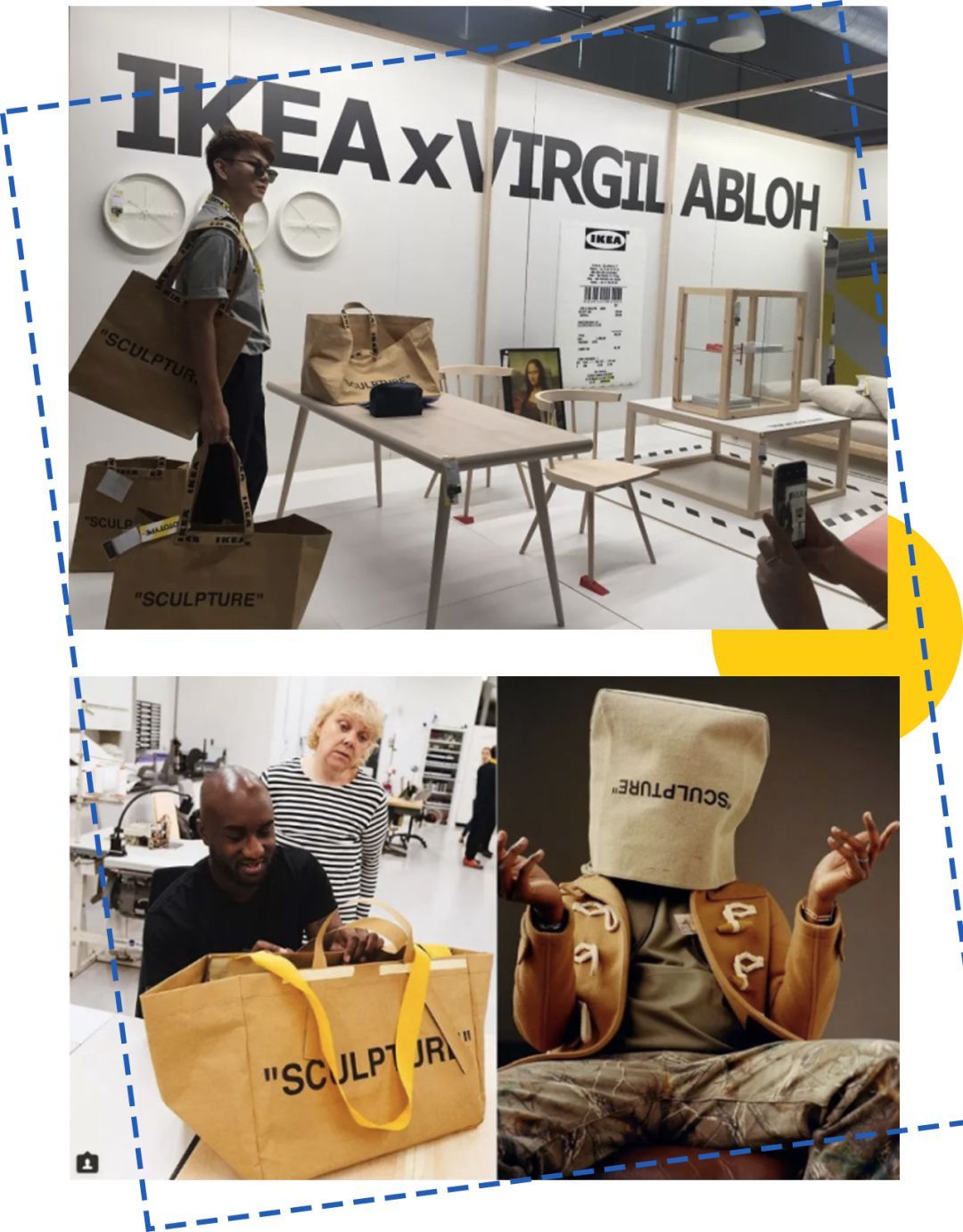 對(duì)你沒(méi)看錯(cuò),下面的FRAKTA系列購(gòu)物袋就是其中一個(gè),Virgil Abloh把OFF-EHITE的SCULPTURE購(gòu)物袋肩帶變成了IKEA的專用色黃、藍(lán)色,也表明了和宜家合作的決心??