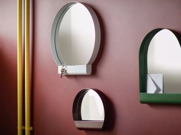 這款金屬小鏡子,三種尺寸,三種顏色,自帶小擱板,兼顧收納,優(yōu)秀: