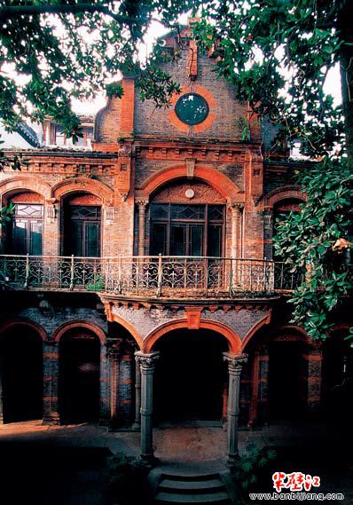 江南大宅劉氏梯號(hào)由三幢中式外樓與兩幢西式磚樓組成,中部建筑以中國(guó)傳統(tǒng)儒家文化居住理念設(shè)計(jì)的廳、堂、樓、廂為主,南部與北部在傳統(tǒng)的中式建筑中融入了西歐巴洛克風(fēng)格。從木質(zhì)百葉窗到花崗石羅馬柱,從歐式彩色玻璃到法國(guó)進(jìn)口的花紋地磚、壁爐,無(wú)不體現(xiàn)出十八世紀(jì)歐洲的建筑風(fēng)格。