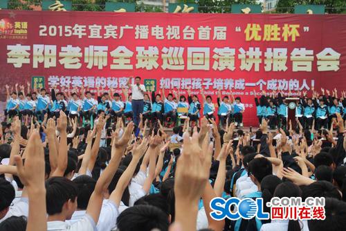 四川在線宜賓頻道消息(路紅英)5月28日,宜賓市六中操場(chǎng)不時(shí)傳來(lái)陣陣掌聲和學(xué)生們大聲誦讀英語(yǔ)的聲音,原來(lái),一場(chǎng)精彩的“李陽(yáng)瘋狂英語(yǔ)全球巡回報(bào)告會(huì)”正在這里進(jìn)行。報(bào)告會(huì)由“李陽(yáng)瘋狂英語(yǔ)”創(chuàng)始人李陽(yáng)老師主講。學(xué)校英語(yǔ)教師和3500名學(xué)生參加了此次報(bào)告會(huì),感受了“瘋狂英語(yǔ)”的魅力。