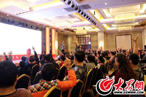 上午9點,演講在臨沂北城新區(qū)藍海國際大飯店1號樓第一會議室正式開始。演講現(xiàn)場座無虛席、掌聲如雷,在座家長和孩子在李陽的帶動下,一起記筆記、學發(fā)音、瘋狂喊英語。期間,孩子們爭相上臺讀單詞,李陽現(xiàn)場給他們的發(fā)音評分并指出了發(fā)音時存在的問題。李陽還將感恩教育和培養(yǎng)學員意志力融入到了現(xiàn)場的英語學習中。“這不僅僅只是一次英語演講,而是集家庭教育、勵志教育和感恩教育為一體的極有價值的人生課堂。”一位家長說。