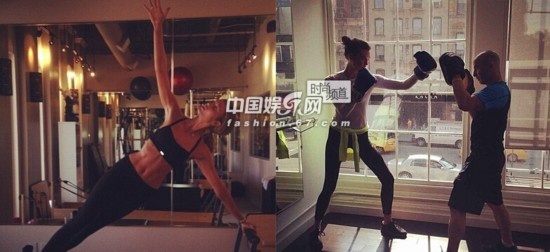 MirandaKerr進(jìn)行力量訓(xùn)練。