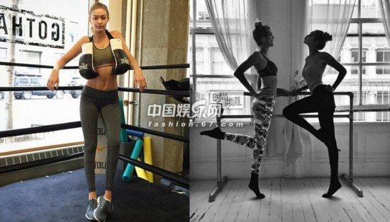 GigiHadid和DevonWindsor倆人的拉筋照。