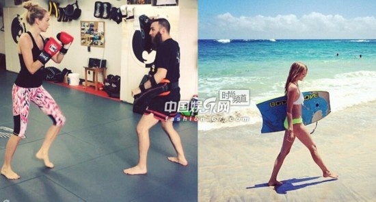 DoutzenKroes會利用跳繩、拳擊、瑜伽等運(yùn)動塑造身材。