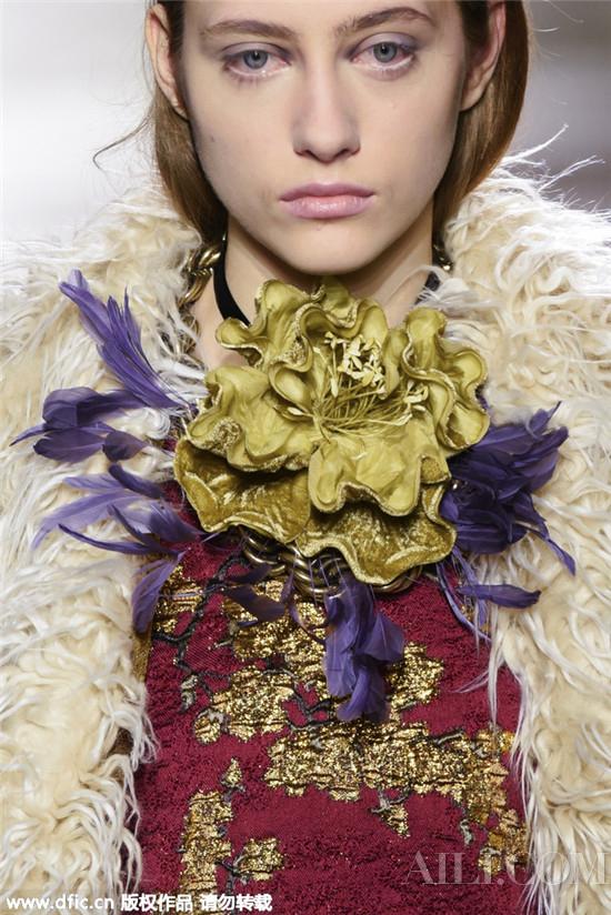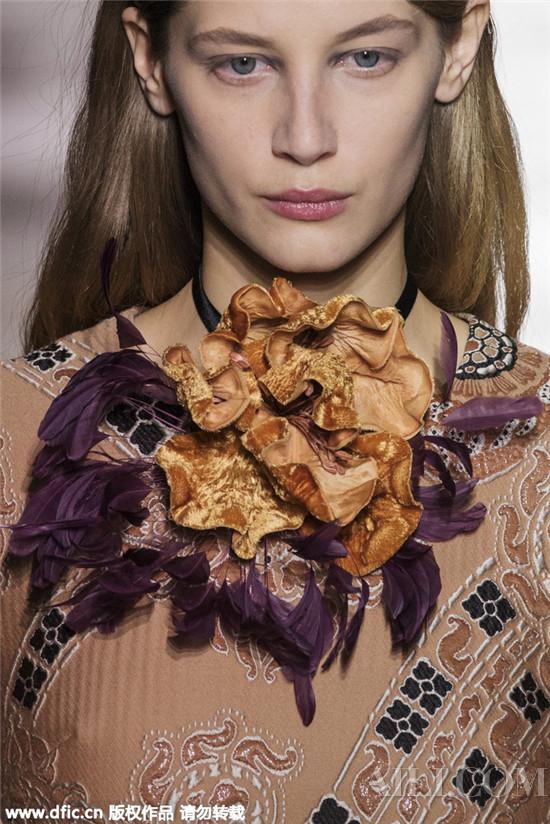 2016年的時尚圈吹來了一陣文藝新風(fēng),從Gucci新帥Alessandro Michele執(zhí)掌的第一個系列,到Dries Van Noten 2015秋冬驚艷之作,都滿是清新脫俗的文藝腔調(diào)。而花朵作為文藝風(fēng)的代表元素更是被大量運(yùn)用在了設(shè)計(jì)上。然而不同于以往的花朵印花裝飾,這次的設(shè)計(jì)更為生動立體,設(shè)計(jì)師直接把整朵花做成了飾物。系在頸間的繁盛花朵細(xì)膩夢幻,在文藝風(fēng)潮盛行的今天更是頗為應(yīng)景!