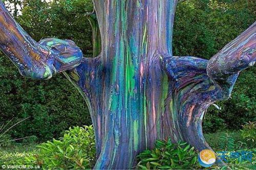 3、這棵彩虹桉樹出現(xiàn)在北半球,原因是外樹皮分別在不同時(shí)間脫落的。