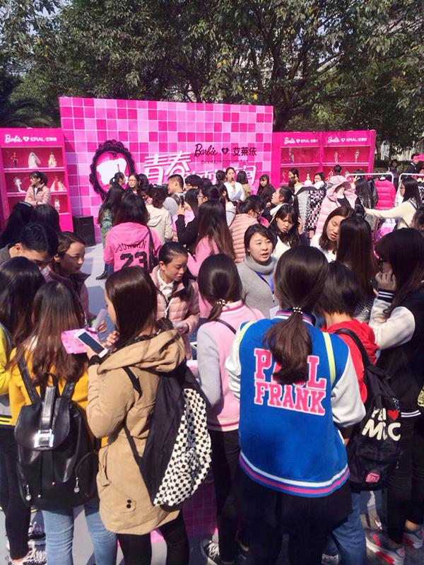 在2015年的金色秋天,芭比全球首次與羽絨服品牌跨界合作,推出的Barbie X 艾萊依聯(lián)名系列羽絨服的“青春敢秀試衣間”將在長沙、南昌、武漢、南京等高校進行前所未有的時尚大秀校園活動,旨在鼓勵每個女孩敢于詮釋時尚,追逐夢想!