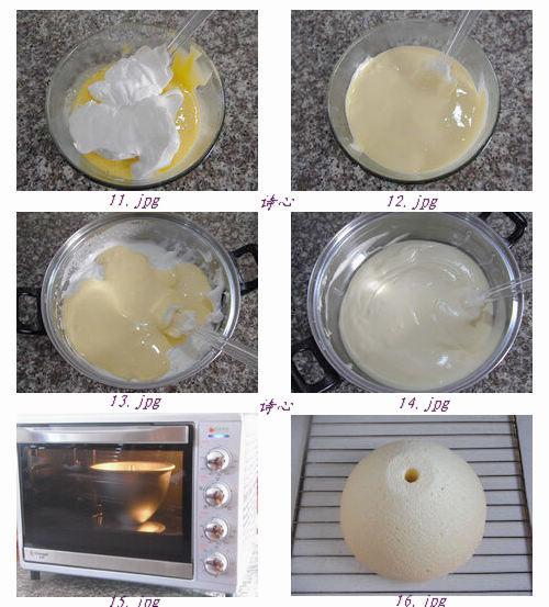 戚風(fēng)(8寸):雞蛋5個、低粉70克、玉米淀粉10克、牛奶40克、玉米油40克、白糖90克(30克加進蛋黃,60克加進蛋白)、檸檬汁幾滴