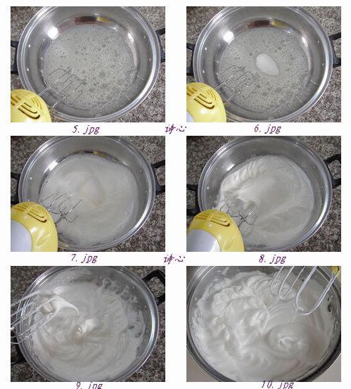 5:蛋白里擠入5、6滴檸檬汁,用電動打蛋器低速攪拌至起大泡。