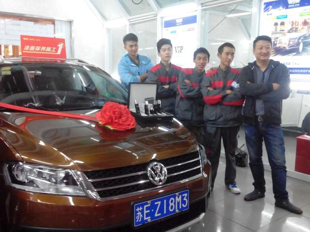 途樂(中國)潘師傅(右1)與合作伙伴蘇州名駿百盛技師在技術(shù)交流后合影,現(xiàn)場氣氛熱情,鍍晶后的車輛恢復(fù)如處子新車。