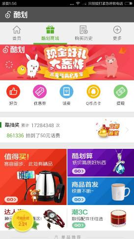 既然是賺錢類APP,提現(xiàn)自然成為其最關(guān)鍵的內(nèi)容。惠鎖屏與酷劃在這上面可以說(shuō)是下足了功夫,和同類其他產(chǎn)品相比,他們提現(xiàn)的方式及種類更加多樣化,從最基本的提現(xiàn),逐漸拓展到商品兌換、手機(jī)充值甚至是抽獎(jiǎng)等方面。但是相對(duì)的也有缺陷,惠鎖屏的商品相對(duì)較少,在100種左右話費(fèi)、提現(xiàn),需在每日10點(diǎn)12點(diǎn)搶兌,根據(jù)很多用戶反饋,搶一個(gè)月也沒(méi)有成功過(guò),而且可以兌換的實(shí)物商品雖然誘人,大多數(shù)卻價(jià)格較高,且大部分長(zhǎng)期處于無(wú)庫(kù)存狀態(tài)。而酷劃在這方面明顯更貼心,目前酷劃的話費(fèi)、提現(xiàn)、虛擬貨幣、實(shí)物商品、優(yōu)惠券的庫(kù)存商品有300種左右,提現(xiàn)及兌換商品沒(méi)有限量,可以“任性”兌換,俗話說(shuō)到口袋里的才是貨真價(jià)實(shí)的,這對(duì)于用戶而言非常具有誘惑力。