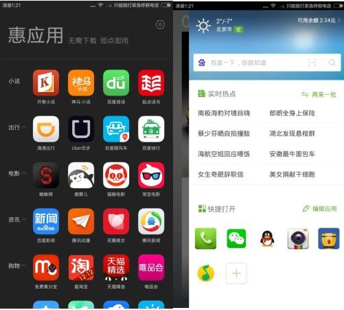 可能有的朋友已經(jīng)看到,這兩款軟件在解鎖屏幕時(shí),屏幕右邊都有一個(gè)滑動(dòng)按鈕,點(diǎn)開(kāi)后你會(huì)驚喜的發(fā)現(xiàn),這正是目前在同類APP中少有的快捷系統(tǒng),我們可以將手機(jī)內(nèi)的應(yīng)用添加到快捷啟動(dòng)欄,直接設(shè)定為快捷啟動(dòng),這樣在我們賺錢的同時(shí)又不耽誤我們隊(duì)手機(jī)進(jìn)行其他操作,非常方便。值得一提的是,在這項(xiàng)功能上酷劃略勝一籌,我們可以看到,酷劃不僅僅是快捷功能這么簡(jiǎn)單,還添加了新聞資訊、百度搜索、天氣預(yù)報(bào)等等功能,足以感受到設(shè)計(jì)師深深的誠(chéng)意。