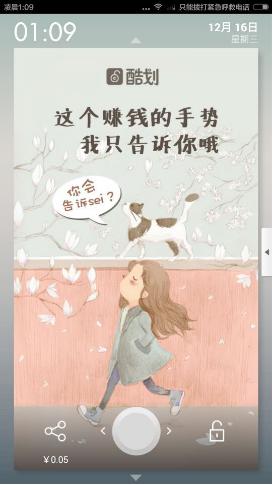 酷劃與惠鎖屏的運(yùn)行界面大致相同,簡(jiǎn)單易懂。惠鎖屏向右劃直接解鎖屏幕,向左劃則可以獲得返現(xiàn),或進(jìn)入下載應(yīng)用任務(wù),而酷劃則正好相反。但是,酷劃不管是向左還是向右均可以獲得返現(xiàn)獎(jiǎng)勵(lì),并且,酷劃還添加了上下滑動(dòng)功能,這使得用戶可以預(yù)覽到更多的更感興趣的信息、收獲更多的返現(xiàn)獎(jiǎng)勵(lì).
