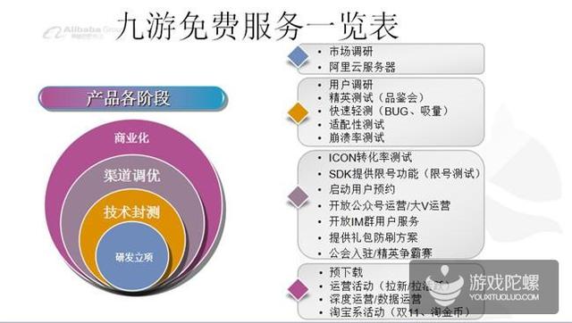 這張表格非常重要,尤其是對商務同學,因為它非常清晰的將產(chǎn)品各個階段(研發(fā)立項、技術封測、渠道調優(yōu)、商業(yè)化)該做、能做的事詳細列了出來。CP可以根據(jù)這個表格合理的安排自己的工作,從而與九游在配合上更加詳細周密,不會浪費九游所能為CP提供的服務。目前大部分CP其實都沒有用充分九游的所有服務,不要以為只有大作才能做預約,小產(chǎn)品同樣可以。
