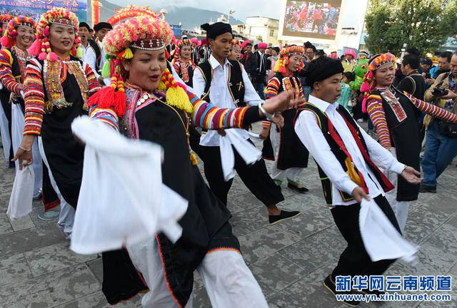 身著節(jié)日盛裝的當(dāng)?shù)厣贁?shù)民族群眾載歌載舞歡慶佳節(jié)