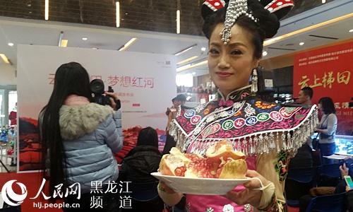 人民網(wǎng)哈爾濱12月10日電(焦洋)當冬天的北國千里冰封萬里雪飄的時候,南國紅河還是艷陽高照、滿目蔥綠、花團錦簇……12月10日,“云南紅河城市文化展示會”哈爾濱站舉行新聞發(fā)布會,介紹紅河文化,展示紅河的民族風情,再現(xiàn)阿細跳月、哈尼古歌等民族歌舞。
