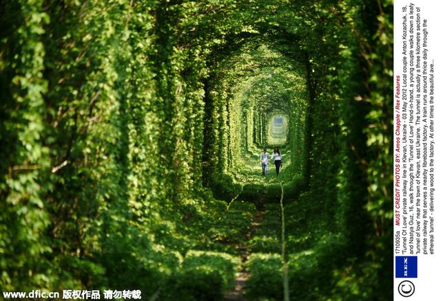 烏克蘭的“愛情隧道”,長約3公里,當(dāng)春天來臨,這段鐵路兩邊茂盛的樹木就會枝繁葉茂,連成天然的拱形長廊,將繁忙的鐵軌化身為“愛情隧道”,上演一段段與眾不同的愛之旅程。據(jù)說這條“愛情隧道”還有一個(gè)美麗的傳說,一對情侶可以到這里許下一個(gè)愿望,如果他們的愛情足夠真摯,那么愿望就會成真。