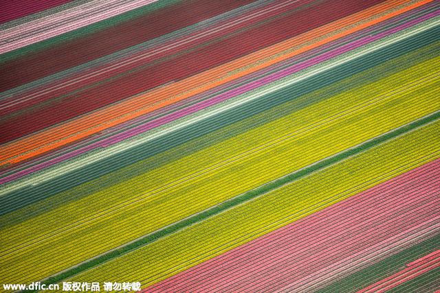 荷蘭阿姆斯特丹郁金香花田,五彩的郁金香花田,畫面精致得就像是抽象畫一樣。每年3月到5月,為了可以讓游人們在短短兩個(gè)月之間不斷看到各色郁金香,園丁們會將花球?qū)盈B埋藏起來,以錯(cuò)開花開的時(shí)間,讓每一支花都可以展現(xiàn)顏色。