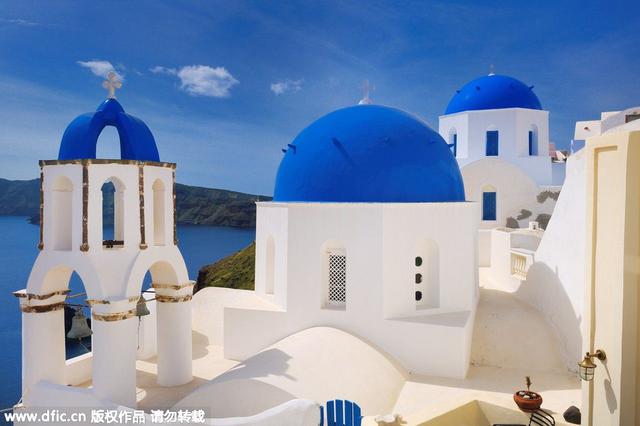 圣托里尼島古名為希拉,后來為紀(jì)念圣·愛蓮,于1207年被改為圣托里尼。圣托里尼島由3個(gè)小島組成,其中2個(gè)島有人居住,中間的1個(gè)島是沉睡的火山島。歷史上,這里曾發(fā)生多次火山爆發(fā),島嶼中心大面積塌陷,原來圓形的島嶼呈現(xiàn)了今天的月牙狀。而島上的房屋更因其與愛琴海之藍(lán)同色而聞名遐邇。