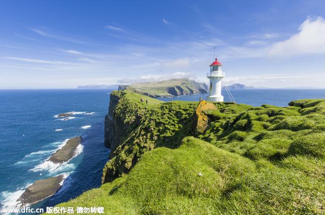 法羅群島位于挪威、蘇格蘭、設(shè)得蘭群島和冰島之間的北大西洋海域,島嶼由覆蓋冰川堆石或泥炭土壤的火山巖構(gòu)成,地勢高聳崎嶇,有險(xiǎn)陡的峭壁,有被深狹谷隔開的平坦山頂。海岸線非常曲折,有峽灣,洶涌的潮流激蕩著島嶼間狹窄的水道。