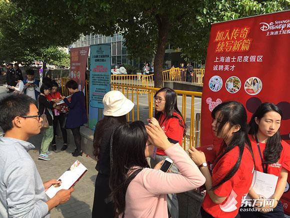 由于無法進入招聘會現場,東方網記者采訪了1名走出招聘現場的應聘者。汪小姐是名90后,她特意從江西趕來應聘迪士尼娛樂演藝職位。她說,上午8點20分排隊進場,然后在2樓大廳候場等待叫號大約1個多小時以后才正式見到了面試官。據介紹,除了網上報名提供的簡歷外,在等候面試期間,她還現場填寫了一份個人信息表格。