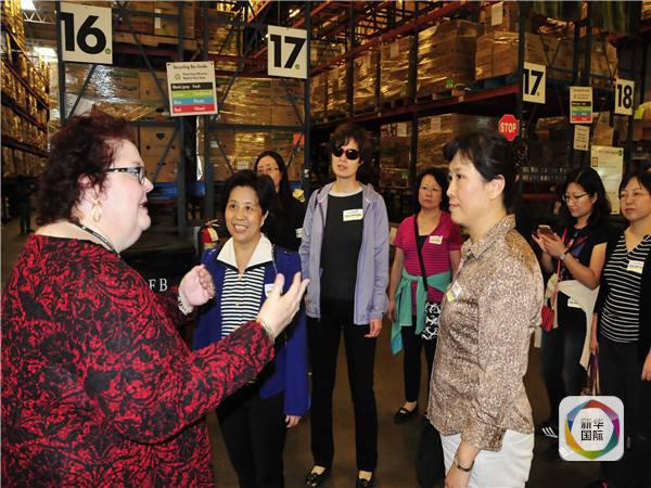 圖為參加義工體驗(yàn)活動(dòng)的中國駐休斯敦總領(lǐng)館人員聆聽賑濟(jì)處工作人員介紹情況。