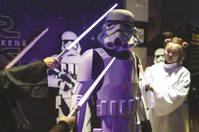 而現(xiàn)在,這件曾經(jīng)不可能的事情,變成了“進(jìn)行時”。《星球大戰(zhàn)7:原力覺醒》(《星戰(zhàn)7》)1月9日零點首映場前,快報天堂電影院聯(lián)合迪士尼、IMAX中國、新遠(yuǎn)國際影城,推出的“星戰(zhàn)嘉年華”現(xiàn)場,出現(xiàn)了很多位黑眼睛黃皮膚的莉亞公主,一批黑頭發(fā)的絕地武士,還有專業(yè)級別的白兵,誰說中國人不會玩?