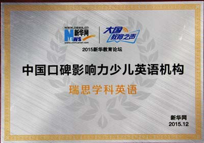 榮獲“中國口碑影響力少兒英語機構”大獎 瑞思實至名歸