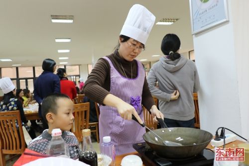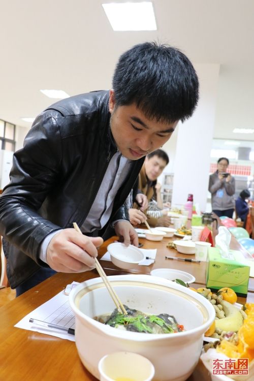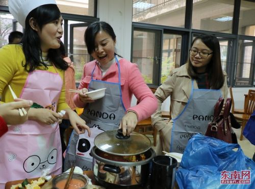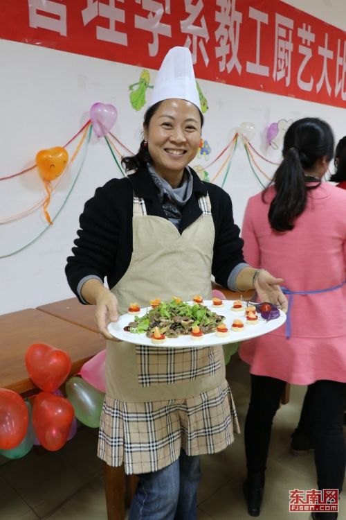 “火爆魔王”、“魚躍龍門”、“瓊池仙露”……12月12日,在福建師范大學協(xié)和學院的教工食堂里,來自該校管理系的6個教職工團隊上演了一場精彩的廚藝大比拼。雞腿火鍋變身“健步如飛”,山藥淋上藍莓果醬變成了“踏雪尋梅”,涼拌木耳被冠以“情迷黑森林”,一道道有趣又美味的菜肴,在教師們的巧手下,漸漸成形。(校通社大學生記者 林美楨/文 通訊員 林思含/攝)
