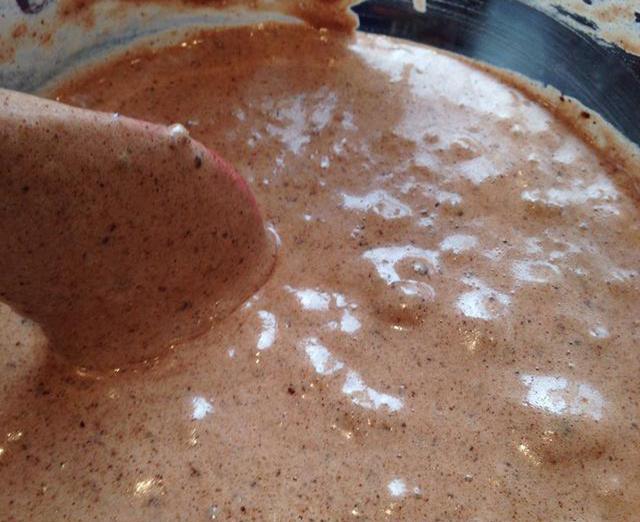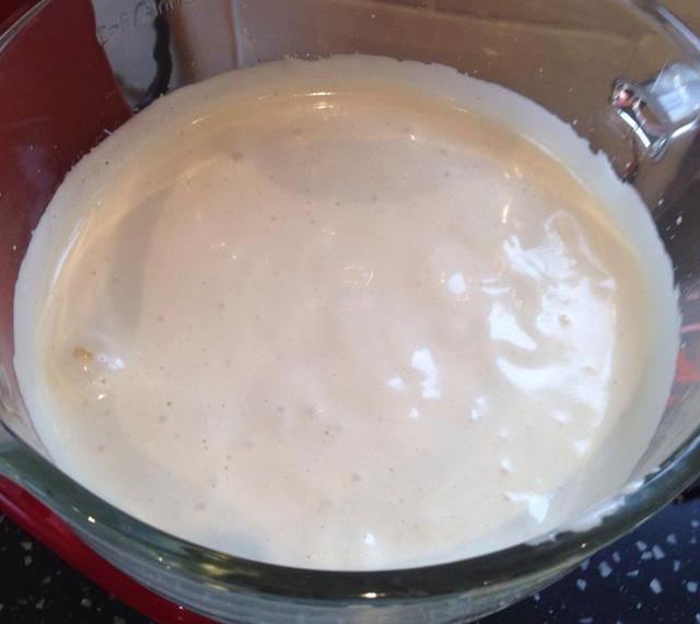 用攪拌器把混合物攪拌得完全順滑,直至沒有結(jié)塊存在。這種時候混合物應(yīng)該是一種非常粘稠的狀態(tài)。