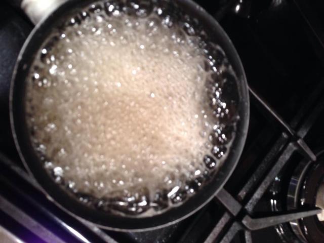 把為糖漿準(zhǔn)備好的食材放進(jìn)平底鍋中,讓它們快速沸騰。