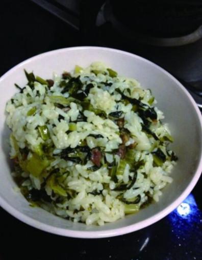 天一冷,江南人家要吃咸肉菜飯。蘇州選“菜”很講究,用的是矮腳青、蘇州青,葉肥肉厚,口感甜糯,與咸肉絕配。菜飯最好是在鄉(xiāng)下農(nóng)家,用燒木柴的大灶鐵鍋燒煮,燒出的飯格外香糯,鍋底還積著金黃的鍋巴!更講究的還要掘一筷熟豬油進碗中,充分?jǐn)嚢瑁俏兜栏橇AO銤饬恕?/p>