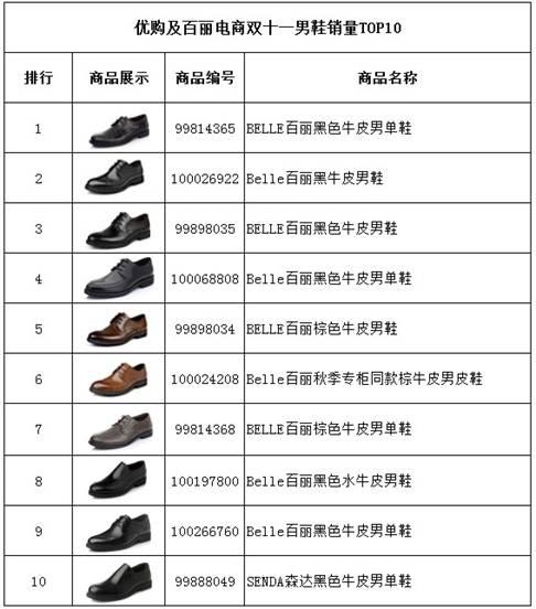 優(yōu)購及百麗電商男鞋TOP10銷售第一名:Belle百麗男款牛皮滿幫鞋