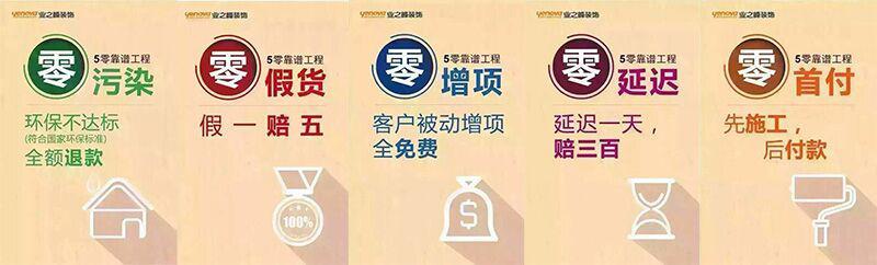 業(yè)之峰市場部主管姚文豪承諾:假一賠五。業(yè)之峰深耕家裝行業(yè)18年,合作伙伴囊括國際一線大牌環(huán)保建材廠商。業(yè)之峰承諾,所有材料和建材均貨真價實。