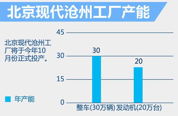 北京現(xiàn)代目前擁有3座整車(chē)工廠,且均位于北京順義,總年產(chǎn)能為105萬(wàn)輛。從北京現(xiàn)代今年112萬(wàn)輛的銷(xiāo)售目標(biāo)來(lái)看,擴(kuò)充產(chǎn)能成為了該企業(yè)進(jìn)一步發(fā)展亟待解決的問(wèn)題。北京現(xiàn)代建立滄州工廠可有效解決“燃眉之急”,新工廠具備年產(chǎn)30萬(wàn)輛整車(chē)以及20萬(wàn)臺(tái)發(fā)動(dòng)機(jī)的能力。滄州工廠投產(chǎn)之后,北京現(xiàn)代整車(chē)產(chǎn)能將達(dá)到135萬(wàn)輛。