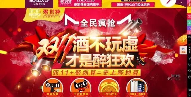 瀘州老窖國窖157352度375mL秒殺1元!雖然活動秒殺僅限手機天貓APP客戶端,但足以讓消費者趨之若鶩。進入其天貓旗艦店就可以看到各式各樣的優(yōu)惠券,但最引人注目的還是其推出的“五大會場high翻雙11”,其中“窖齡限時秒殺”搶到了就是白菜價,限量100套瀘州老窖窖齡30年38度 500ml*2,最低價 229元,52度329元。從一些標(biāo)語中亦可以看出瀘州老窖的這次血拼信念:“錯過這次,再等一年”、“隨你去比,看誰實惠”。