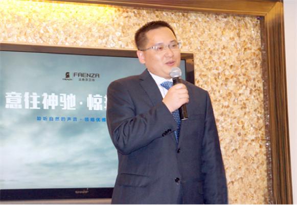 華耐立家建材連鎖上海分公司法恩莎品牌總經(jīng)理李林明發(fā)表講話