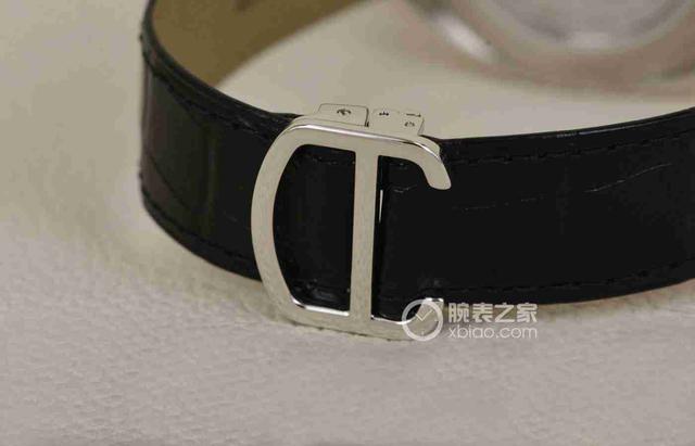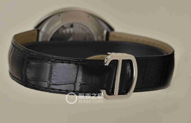 腕表表帶以白金材質(zhì)的折疊扣鏈接,表扣外型設(shè)計獨特優(yōu)美。黑色皮帶和銀色表扣的搭配,不僅毫不違和,反而讓人感覺穩(wěn)重經(jīng)典。