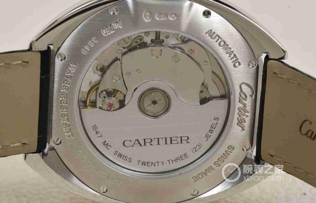 表殼背部為背透表底,表底外緣為金屬材質(zhì),中央為玻璃鏡面,可以看到內(nèi)部機芯。表底使用螺絲栓固定于表殼之上。腕表搭載的是性能卓越的自動機械機芯。