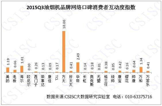 消費者互動度方面,有研究行業(yè)整體上,互動度方面各品牌投入程度不同,導(dǎo)致品牌間的互動度指數(shù)相差較大,方太油煙機的消費者互動度指數(shù)一枝獨秀,主要是在微博、論壇等平臺的信息量較大;其余品牌在本季度消費者的互動度方面表現(xiàn)平平。