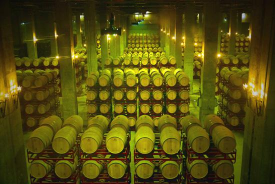 酒莊地下酒窖面積為15800平米,是目前亞洲最大的地下酒窖。酒窖內有來自不同地區(qū)、不同紋理和不同烘烤程度的橡木桶20余種。