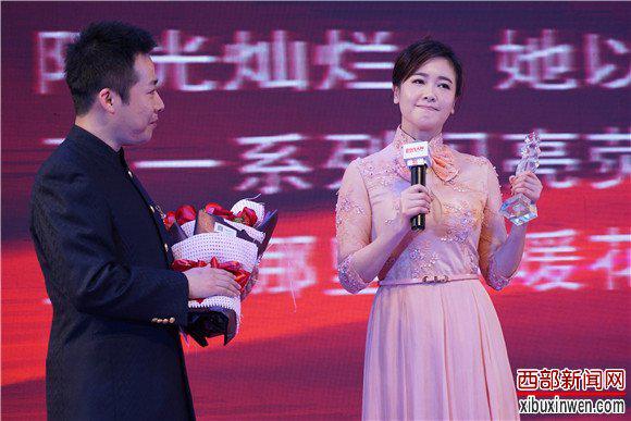 著名演員左小青榮膺“中國淑女”獎併發(fā)表獲獎感言 左為陜西廣播電視臺節(jié)目主持人徐杰
